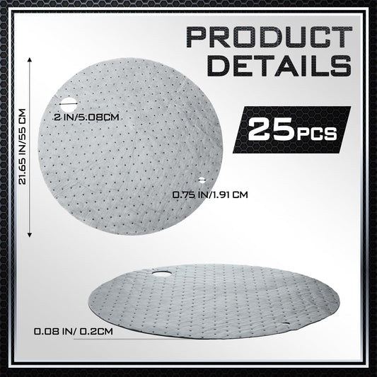 Frienda 25 Pcs Drum Top Absorbent Pads for 55 Gallon Drums Barrel Oil Absorbent Pads Mat 22 Inch Diameter Lid Oil Mat with Bungs 0.75 Inch Diameter and 2 Inch Diameter, Gray