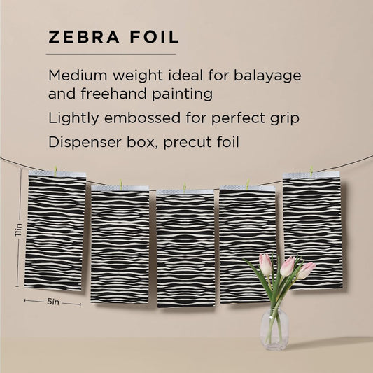 Fromm Pop Up Hair Foils, Zebra Print Pattern, Cosmetology Supplies, Hairstylist Essentials, Lightweight, Ideal for Highlighting and Coloring, Precut, 5" x 11", 500 Foil Sheets