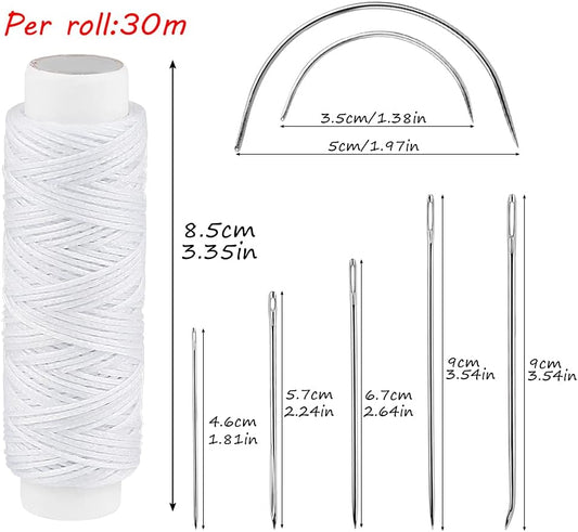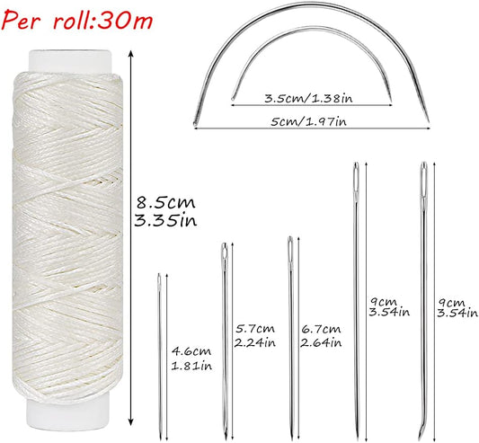 Ftyiwu Waxed Thread, Upholstery Needle and Thread 32 Yards with 7PCS Hand Sewing Needles for Home Upholstery Carpet Canvas Repair Leather Sewing (White)
