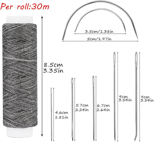 Ftyiwu Waxed Thread, Upholstery Needle and Thread 32 Yards with 7PCS Hand Sewing Needles for Home Upholstery Carpet Canvas Repair Leather Sewing (Dark Gray)