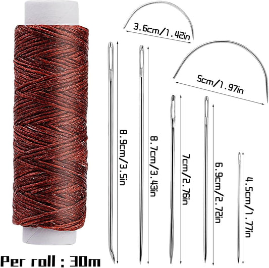 Ftyiwu Waxed Thread, Upholstery Needle and Thread 32 Yards with 7PCS Hand Sewing Needles for Home Upholstery Carpet Canvas Repair Leather Sewing (Red Coffee)