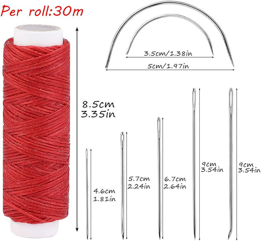 Ftyiwu Waxed Thread, Upholstery Needle and Thread 32 Yards with 7PCS Hand Sewing Needles for Home Upholstery Carpet Canvas Repair Leather Sewing (Red)