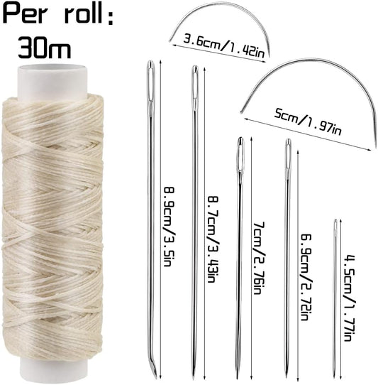 Ftyiwu Waxed Thread with Leather Hand Sewing Needles 32 Yards, 150D Flat Sewing Waxed Thread, and Leather Repair Needles for Home Upholstery Carpet Canvas Repair (Beige)
