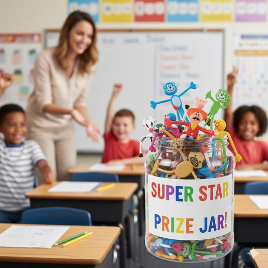 Fun Express Mega Bendable Toy Bulk Assortment 100 Pieces - Party Favors for Kids 4-8 & 8-12 | Classroom Prizes, Treasure Box Toys, Goodie Bag Stuffers | Birthday Party Supplies & Halloween Rewards