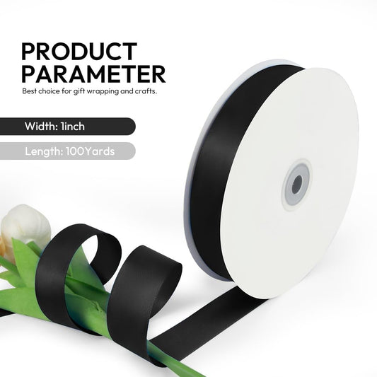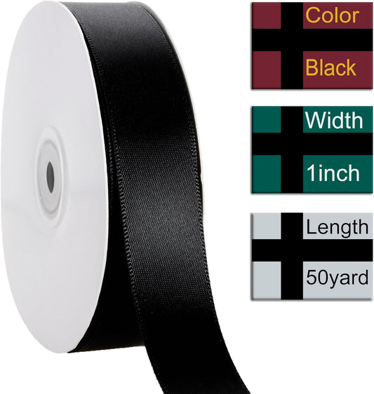 1 Inch Black Solid Satin Ribbon, 50 Yards Craft Fabric Ribbon for Gift Wrapping Floral Bouquets Wedding Party Decoration