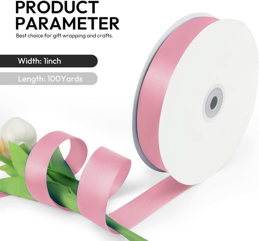 1 Inch 100 Yards Satin Ribbon Dusty Pink, Solid Color Fabric Ribbon for Gift Wrapping, Wedding, Polyester Gift Ribbon for Birthday Party Decoration, Craft, Hair, Floral, Sewing