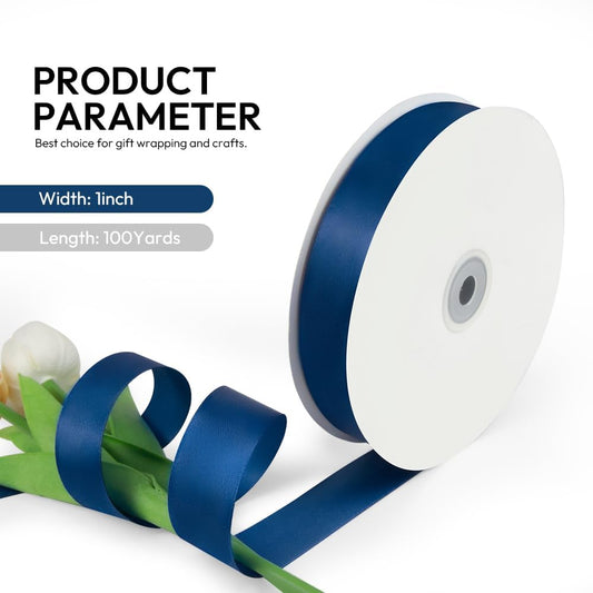 1 Inch 100 Yards Satin Ribbon Dark Blue, Solid Color Fabric Ribbon for Gift Wrapping, Wedding, Polyester Gift Ribbon for Birthday Party Decoration, Craft, Hair, Floral, Sewing