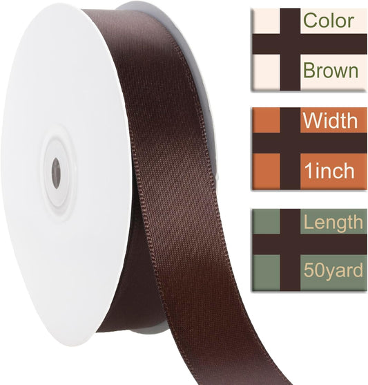 1 Inch Brown Solid Satin Ribbon, 50 Yards Craft Fabric Ribbon for Gift Wrapping Floral Bouquets Wedding Party Decoration
