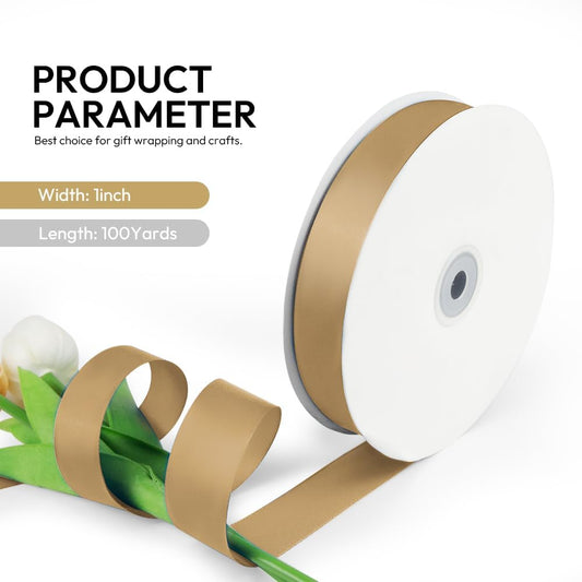 1 Inch Champaign Gold Solid Satin Ribbon, 50 Yards Craft Fabric Ribbon for Gift Wrapping Floral Bouquets Wedding Party Decoration