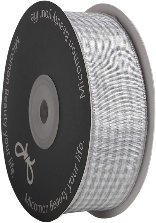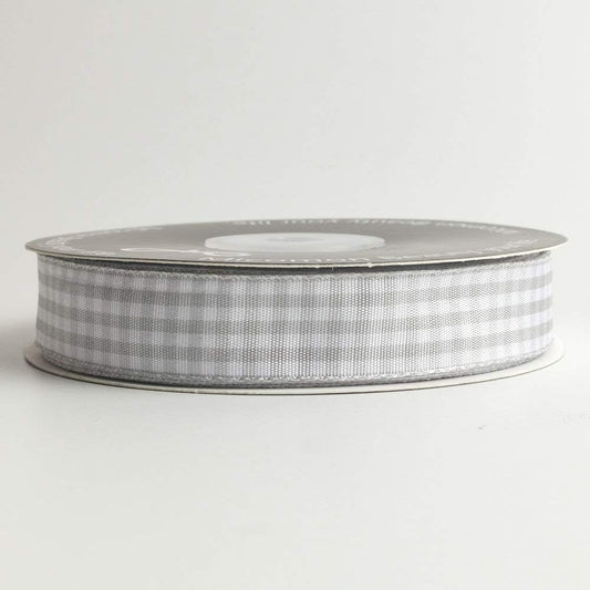 Gingham Ribbon - Gray and White, 25 Yards Each Roll, 100% Polyester (5/8")