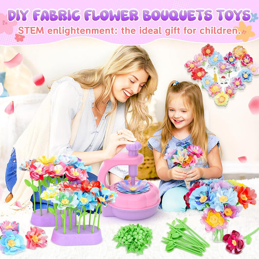 GirlsHome 300+PCS Fabric Flower Bouquets Toys, DIY Flower Crafts Kits for Kids, Arts and Crafts for Kids Ages 6-8 Girls, Build Flower Bouquet, STEM Educational Toy Preschool Gifts (Purple Pink)
