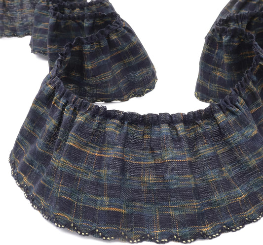 Gingham Ruffle Lace Trim Pleated Lace 5 Yards Gathered Gingham Fabric Edge Ribbon Trim for Dresses, Wedding Gowns, Crafts, Home Decor (Black)