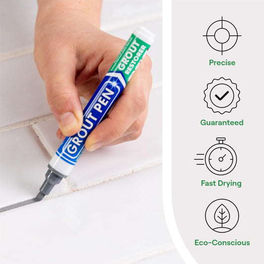 Grout Pen White Tile Paint Marker: Waterproof Grout Paint, Tile Grout Colorant and Sealer Pen - White, Wide 15mm Tip (20mL)