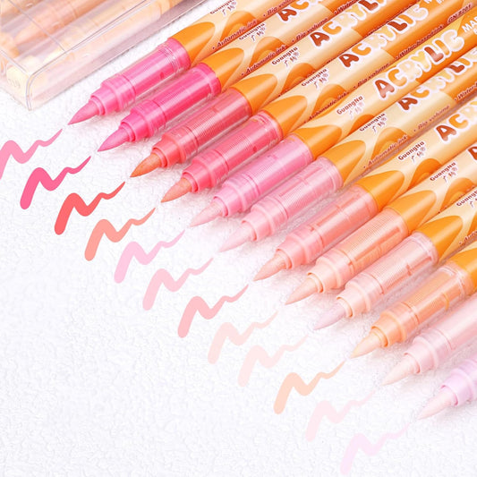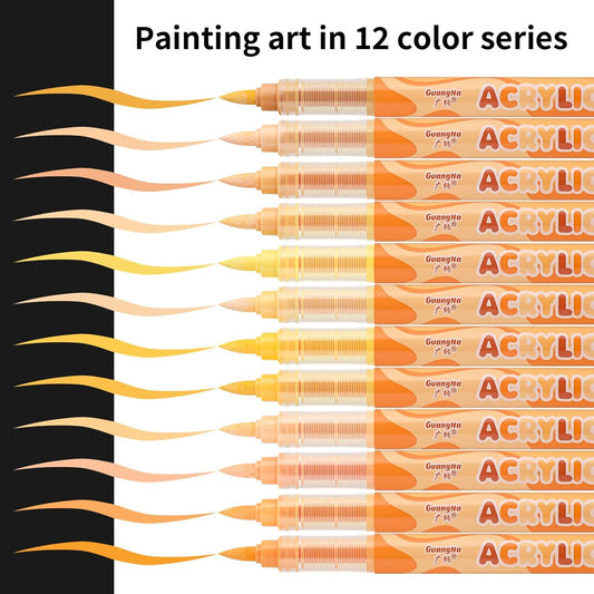 Guangna Acrylic Paint Markers 12 Colors, Skin Tone Series Set with Soft Brush Tip Water Based, Fine Tip Markers for Wood, Canvas, Rock Painting, Glass, Diy Crafts, Fabric Paint