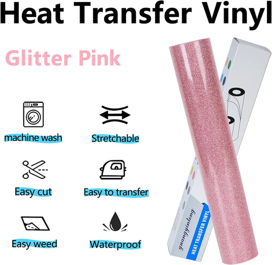guangyintong Glitter Pink Heat Transfer Vinyl HTV Rolls, 12" x 8ft Iron on Vinyl for T-Shirts Glitter Pink HTV Vinyl for All Cutter Machines Easy to Cut & Weed for Heat Vinyl Design