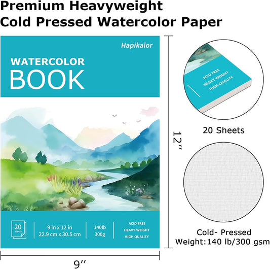 Hapikalor Watercolor Paper Pad, 9"x12" 140lb/300gsm Artist Drawing Sketch Book, Paper Pad, Art Journal, Arts and Crafts Supplies for Adults Kids, Paint Set, Colors, Canvas Painting, Watercolors, Blue