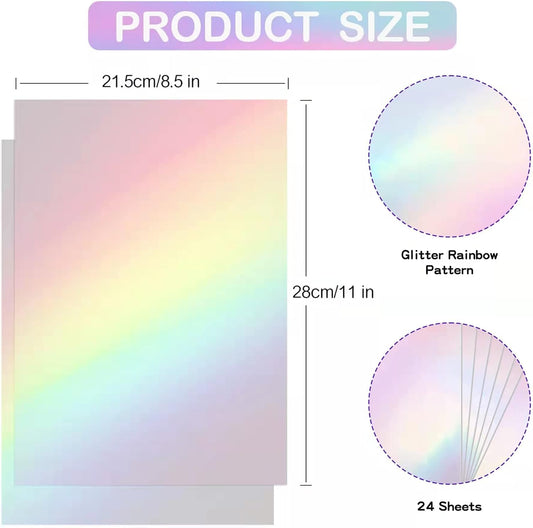 Holographic Sticker Paper, 24 Sheets Transparent Holographic Laminate Vinyl Sheets, Clear Overlay Lamination Sticker Film Self Adhesive Waterproof with Rainbow Patterns - 8.5 x 11 Inch (Laser Style)