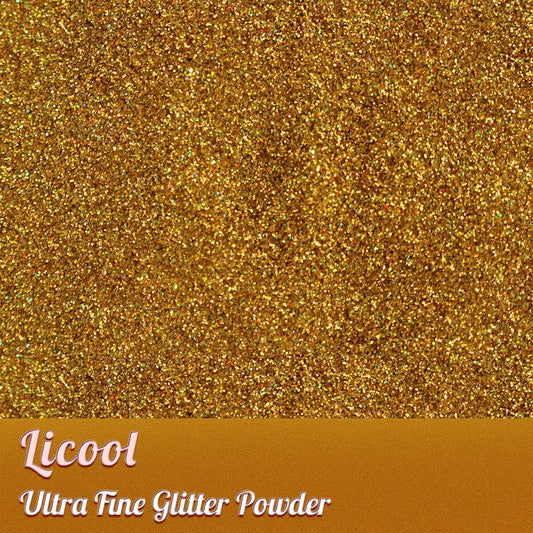Holographic Fine Glitter, 100g/3.5oz Extra Fine Glitters Powder Packs for Resin, Craft Glitter for Tumblers Candle Slime Making, Festival Body Face Eyeshadow Nail Glitter (Light Gold 3)