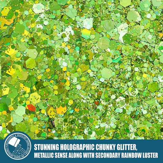 Holographic Chunky Glitter, 5.64oz/160g Extra Fine Glitter Powder Mixed Chunky Flake, Iridescent Sequins Bulk for Nail Art, Crafts Epoxy Resin, Festival Glitter for Party Decor (Dazzling Green)