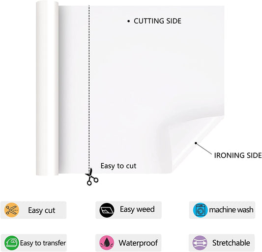 HTV Iron on Vinyl 12Inch by 25ft Roll Heat Transfer Vinyl for T-Shirt HTV Vinyl Rolls for All Cutter Machine - Easy to Cut & Weed for Heat Transfer Design (25ft, White)