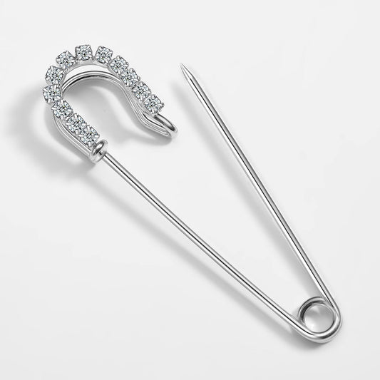 HOUSWEETY 10 Pcs Safety Pins Encrusted with White Rhinestone 6.5x1.8 cm - Personalized Design - Charm for Fashion