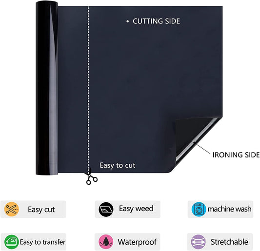 HTV Iron on Vinyl 12Inch by 25ft Roll Heat Transfer Vinyl for T-Shirt HTV Vinyl Rolls for All Cutter Machine - Easy to Cut & Weed for Heat Transfer Design (25ft, Black)