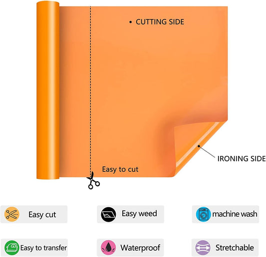 HTV Iron on Vinyl 12Inch by 25ft Roll HTV Heat Transfer Vinyl for T-Shirt HTV Vinyl Rolls for All Cutter Machine - Easy to Cut & Weed for Heat Vinyl Design (25ft, Orange)