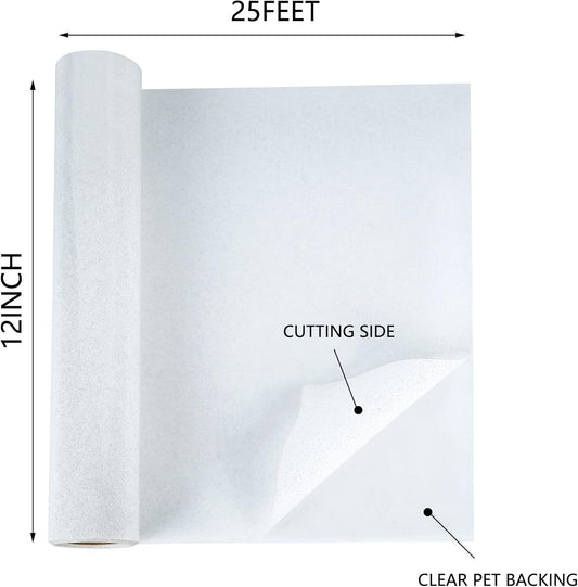 HTV White Glitter Iron on Vinyl 12Inch by 25ft Roll Heat Transfer Vinyl for T-Shirt HTV Rolls for All Cutter Machine - Easy to Cut & Weed for Heat Transfer Design (25ft, 01-Glitter White)