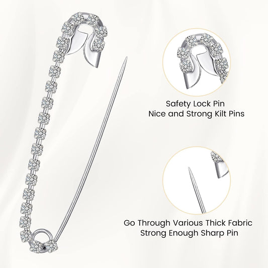 Housweety 10 Silver Tone Rhinestone Safety Pins Brooches 5.8x1.2cm
