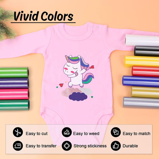 HTVRONT HTV Heat Transfer Vinyl -13 Pack HTV Vinyl, 12" x 10" Iron on Vinyl for T Shirts, 10 Assorted Premium Colors Heat Transfer Vinyl for All Cutting Machines