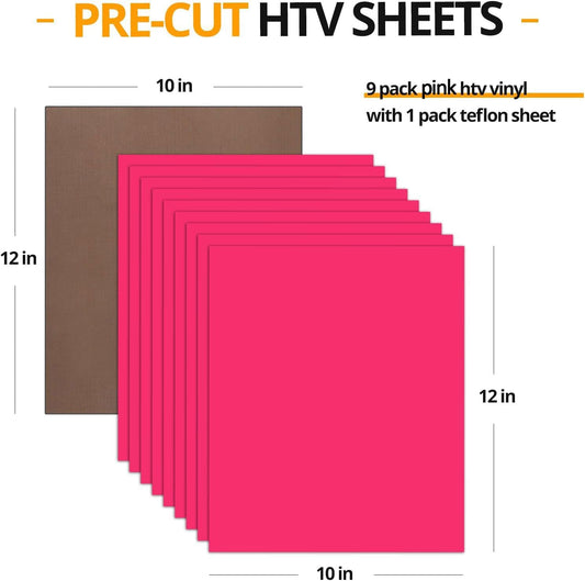 HTVRONT Pink Heat Transfer Vinyl Bundle - 10 Pack 12" x 10" HTV Vinyl for T-Shirt, Neon Pink Iron on Vinyl for All Cutting Machine or Heat Press Machine