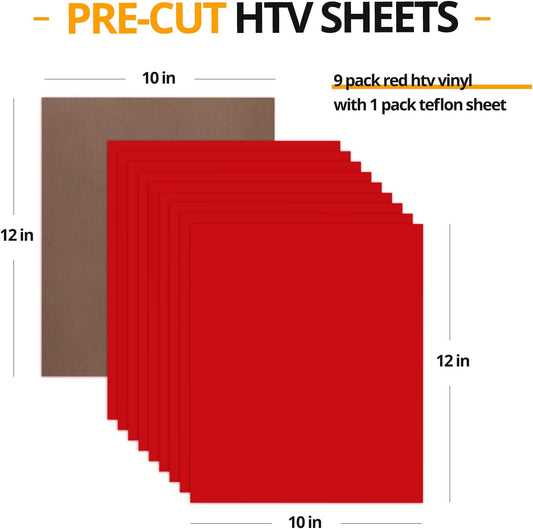HTVRONT Red Heat Transfer Vinyl Bundle - 10 Pack 12" x 10" HTV Vinyl for T-Shirt, Red Iron on Vinyl for All Cutting Machine or Heat Press Machine