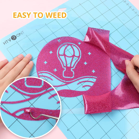 HTVRONT Rose Purple Glitter HTV Vinyl - 10" x 8ft Glitter Heat Transfer Vinyl for T Shirts, Iron on Vinyl for All Cutter Machines - Easy to Cut & Weed (Rose Purple Glitter)