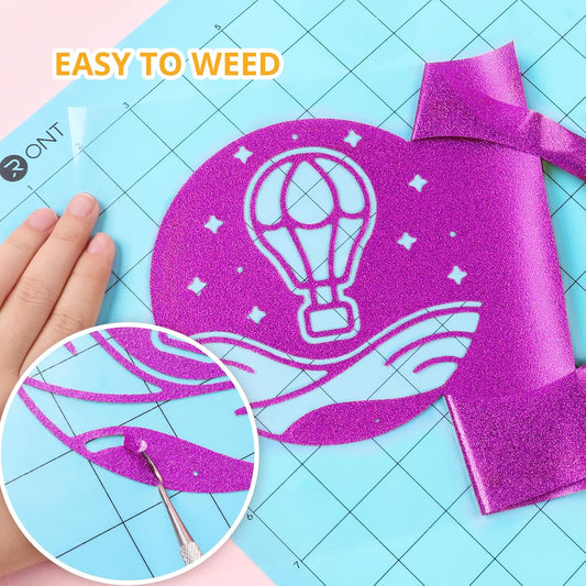HTVRONT Purple Glitter Heat Transfer Vinyl - 10" x 5FT Glitter HTV Vinyl for T-Shirts, Iron on Vinyl for All Cutter Machines, SG-HTV-0466-E