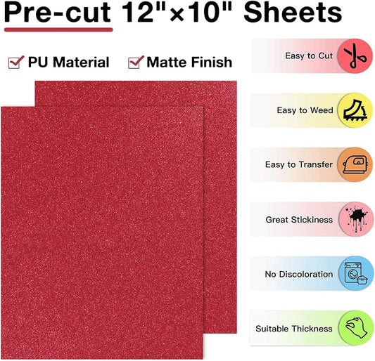 HTVRONT Red Glitter HTV Heat Transfer Vinyl Bundle: 13 Pack 12" x 10" Iron on Vinyl for T-Shirt, Red Glitter Heat Transfer Vinyl for Compatible with Cricut Cutting Machine or Heat Press Machine