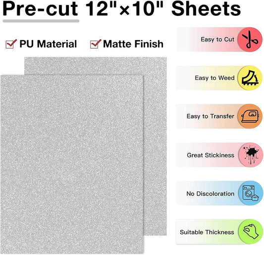 HTVRONT Silver Glitter HTV Heat Transfer Vinyl Bundle: 13 Pack 10" x 12" Iron On Vinyl for T-Shirt, Cricut, Silhouette Cameo or Heat Press Machine