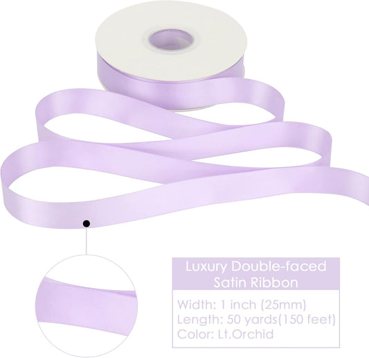 HUIHUANG Lilac Satin Ribbon 2 inch Wide Double Faced Satin Ribbon Lilac Purple Ribbon for Gift Wrapping, Bows Making, Flower Bouquet, DIY Crafts, Bridal Shower, Holiday Party Decor-25 Yards/Roll