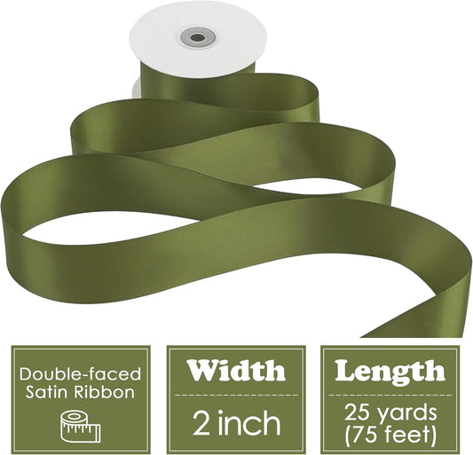 HUIHUANG Olive Green Ribbon 2 inch Wide Double Faced Satin Ribbon Green Ribbon for Gift Wrapping, Bows Making, Flower Bouquet, DIY Crafts, Bridal Shower, Holiday Party Decor -25 Yards/Roll