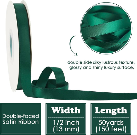 HUIHUANG Hunter Green Satin Ribbon 1/2 inch X 50 Yards Continuous, Dark Green Double-Faced Satin Ribbon for Gift Wrapping, Bows, DIY Crafts, Flower Bouquet, Wedding Decor, Christmas