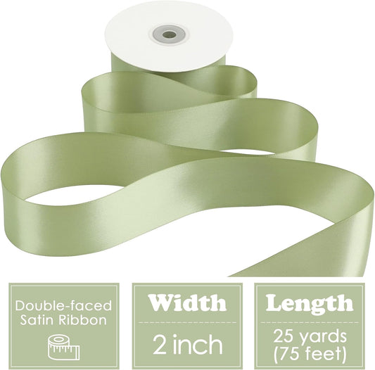 HUIHUANG Sage Green Satin Ribbon - 25 Yards/Roll for Flower Bouquets, Wedding Invitations, Gift Wrapping, Holiday Decor, Hair Bows