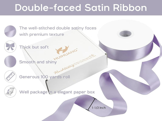 HUIHUANG Purple Satin Ribbon 1-1/2 inch x 100 Yards Lavender Color Double-Faced Satin Ribbon for Flower Bouquet, Gift Wrapping, Eternal Roses, DIY Crafts, Bridal Shower Wedding Decor