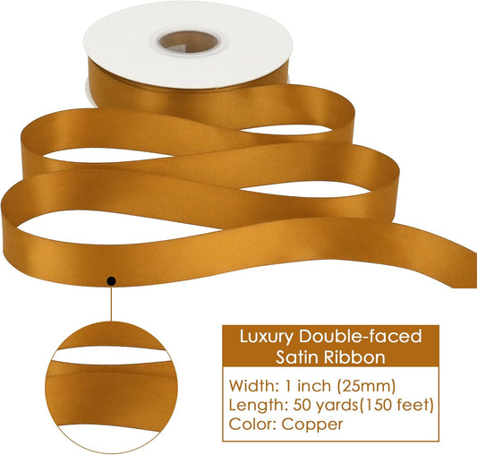 HUIHUANG Satin Ribbon 1 inch Wide Copper Ribbon 50 Yards Double Face Satin Ribbons for Crafts Gift Wrapping Bows Floral Bouquet Cake Box Christmas Decor Wedding Invitation Card Party Favor