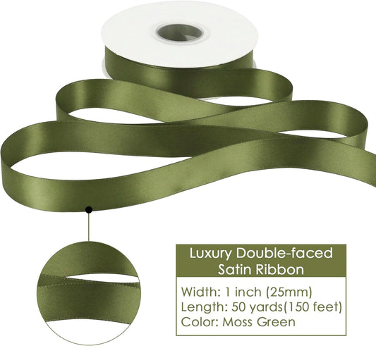 HUIHUANG Satin Ribbon 1 inch Moss Green Ribbon 50 Yards Double Face Silk Satin Ribbons for Crafts Christmas Tree Decor Gift Wrapping Bows Bridal Floral Bouquet Wedding Invitation Card Party Decor