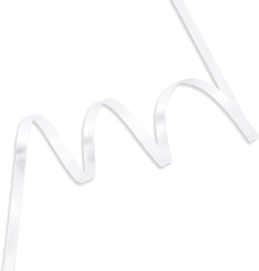 Humphrey's Craft 1/4 Inch White Double Faced Satin Ribbon - 50 Yards Variety of Color for Crafts Gift Wrapping DIY Bows Bouquet Decoration Sewing Christmas Tree Wedding and Invitation Card.