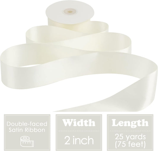 HUIHUANG White Satin Ribbon 2 inch Wide Double Side White Silk Fabric Ribbon for Crafts, Bows Making, Flower Bouquet Wrap, Gift Wrapping, Wedding Bridal Shower Decor, Home Decor -25 Yards/Roll