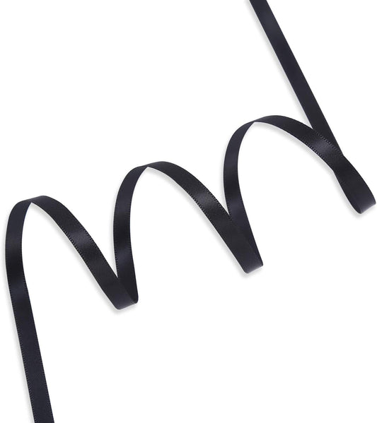 Humphrey's Craft 1/4 Inch Black Double Faced Satin Ribbon - 50 Yards Variety of Color for Crafts Gift Wrapping DIY Bows Bouquet Decoration Sewing Christmas Tree Wedding and Invitation Card.