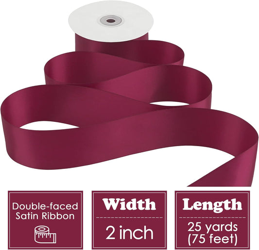 HUIHUANG Wine Red Ribbon 2 inch Wide Double Face Satin Ribbon Maroon Fabric Ribbon for Flower Bouquet Wrap, Wedding Bridal Shower Holiday Decor, Bows Making Crafts, Gift Wrapping-25 Yards/Roll