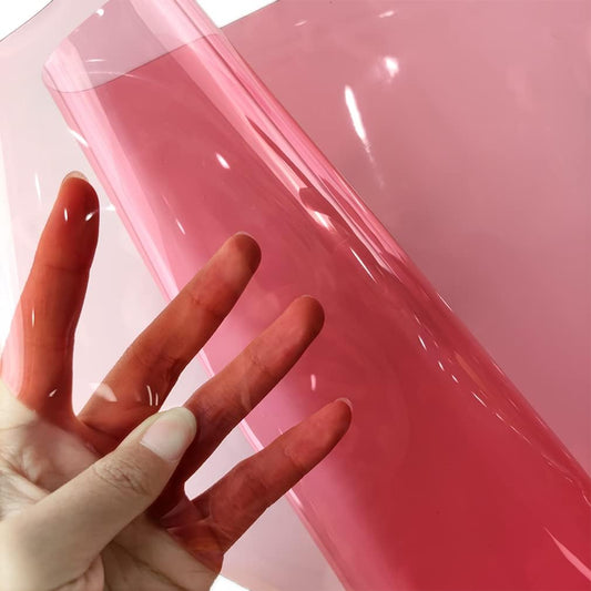 HYANG Dark Pink Transparent PVC Super Clear Holographic Vinyl Faux Leather Sheets 1 Roll 12" x 47" (30cm x 120cm) for DIY Bows Earrings Bags DIY Crafts Making