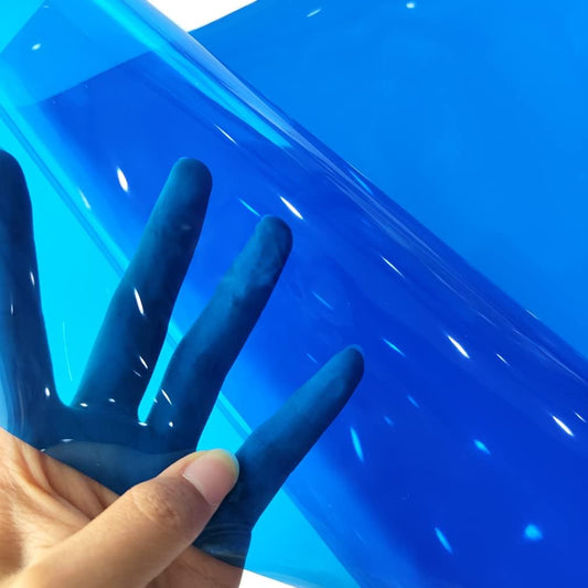 HYANG Blue Transparent PVC Super Clear Holographic Vinyl Faux Leather Sheets 1 Roll 12" x 47" (30cm x 120cm) for DIY Bows Earrings Bags DIY Crafts Making