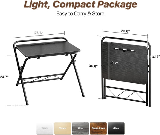 Huuger Folding Desk with 3-Level Adjustable Height and Tablet Slot, 24 Inch Foldable Computer Desk for Small Spaces, Space Saving, Study Writing Work Table for Home Office, Bedroom, Study, Black